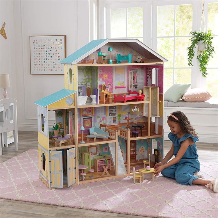 Speel urenlang met het Majestic Mansion Dolls House. Dit 136 cm hoge herenhuis heeft 4 verdiepingen, 8 kamers, een grote trap en een glijdende lift om de poppen van je kind te vervoeren. Dit ruime poppenhuis bevat een 34-stuks meubelaccessoirepakket waarmee kinderen urenlang plezier zullen beleven aan het verkennen van het majestueuze landhuis met hun 12-inch (30-cm) modepoppen.