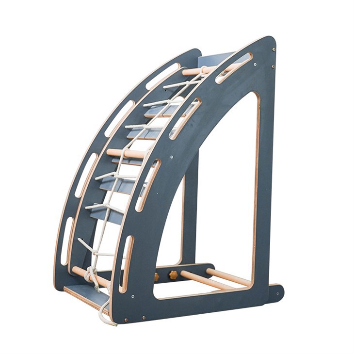 5. Bespaar ruimte: vergeleken met conventionele sportuitrusting is het volume van de grijze gebogen houten klimladder klein en heeft het weinig ruimte, wat geschikt is voor plaatsen zoals thuis, scholen, parken.